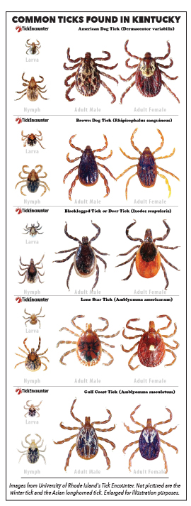 Information from the Kentucky Department of Health website and the University of Kentucky Entomology Department. Images from Tick Encounter from University of Rhode Island.